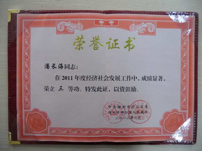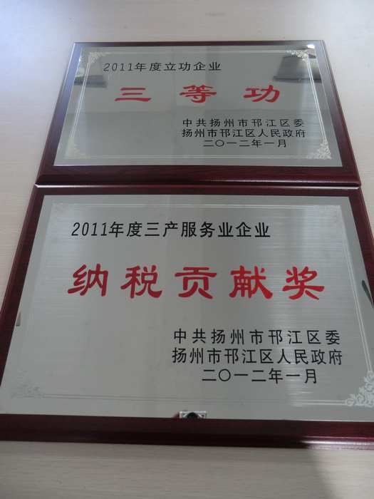 熱烈祝賀我院在揚(yáng)州市邗江區(qū)2011年度經(jīng)濟(jì)社會發(fā)展先進(jìn)集體和先進(jìn)個人評比中榮獲:三產(chǎn)服務(wù)業(yè)納稅貢獻(xiàn)獎、服務(wù)業(yè)三等功、潘長海董事長個人三等功等榮譽(yù)
